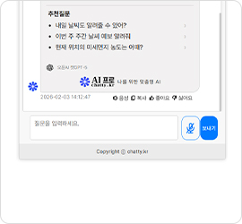 추천질문 형식과 노출 개수를 설정할 수 있으며, 추천질문 클릭 시 해당 질문이 바로 시작됩니다.