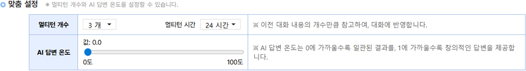 멀티턴 개수와 AI 답변 온도를 설정합니다.