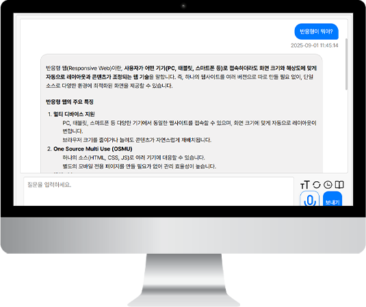 태블릿화면이 넓은 기기에서는 답변을 더 길게, 여러 내용을 동시에 확인할 수 있어 다양한 답변을 더 풍부하게,