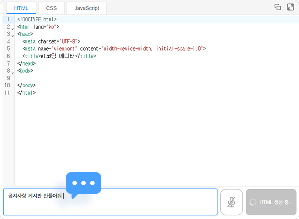 개발 지식이 없어도 괜찮습니다. “공지사항 게시판 만들어줘” 라는 간단한 명령어가 어떻게 실제 작동하는 웹 페이지로 변하는지, 그 마법 같은 과정을 지금 바로 확인해 보세요.