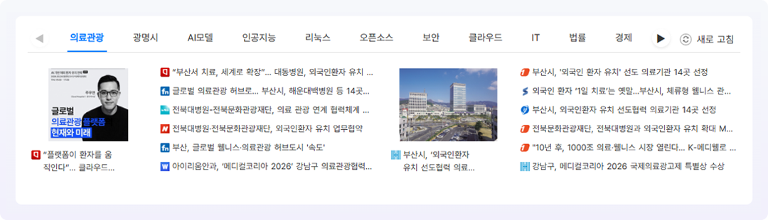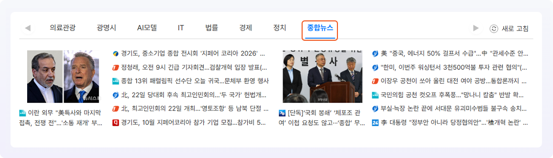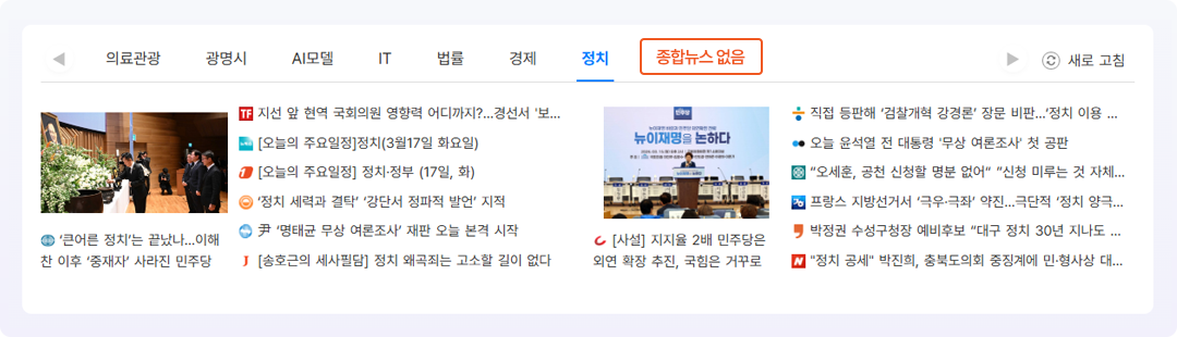 종합뉴스의 사용여부를 OFF로 설정하여 해당 탭이 미노출됩니다.
