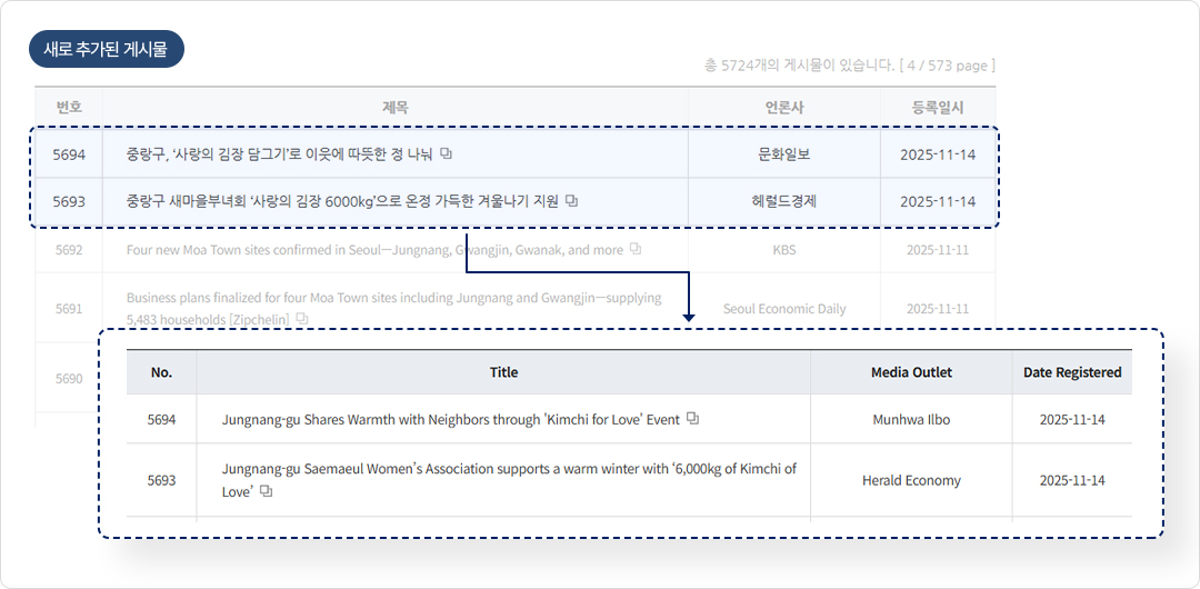 게시판 내 새로 등록된 게시물만 자동으로 감지해 번역하기 때문에, 이미 번역된 항목을 다시 처리하지 않습니다.