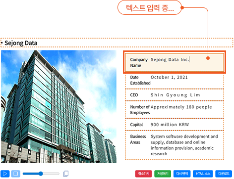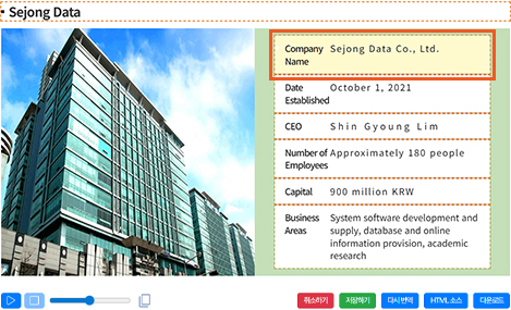 예를 들어 회사명이 자동으로 ‘Sezong Data’로 표기되거나, 대표자명이 ‘Sin Kyung Rim’으로 잘못 변환될 수 있습니다.