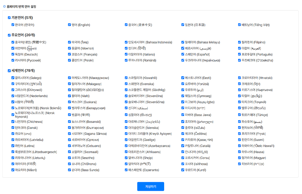 제공 언어를 설정하여 홈페이지 디자인에 맞게 맞춤 설정하여 사용할 수 있습니다.