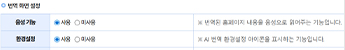 또한 음성 읽어주기 기능과 번역 기능을 각각 설정 또는 해제할 수 있습니다.