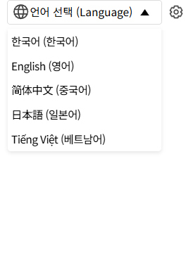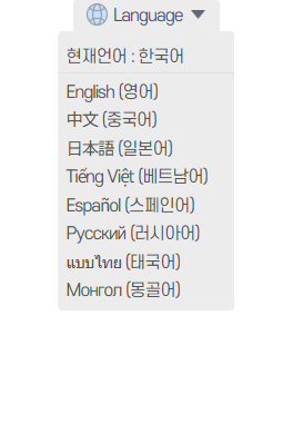 홈페이지 디자인에 맞게 직접 커스텀하여 적용할 수 있으며, 선택 가능한 언어 수에 따라 다양한 형태로 구성할 수 있습니다.