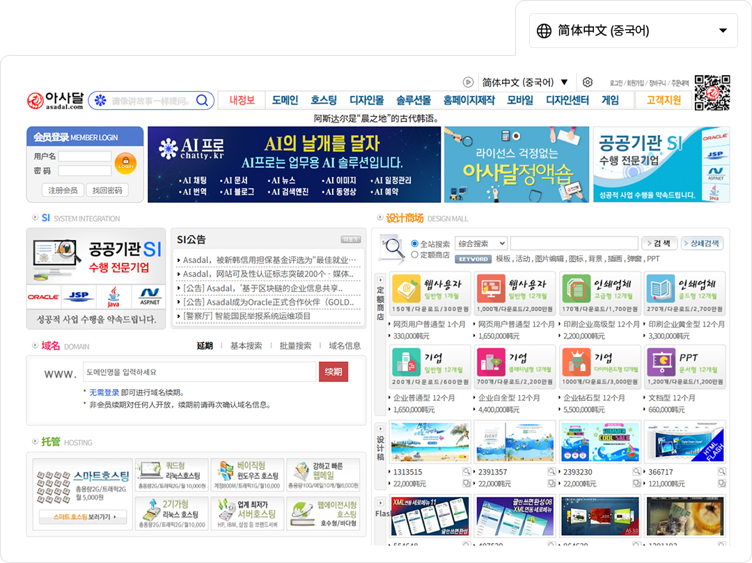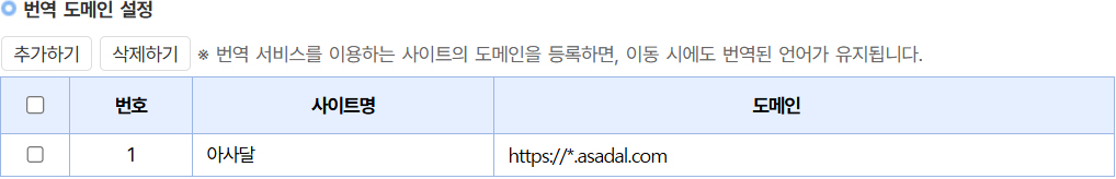 아사달 사이트의 경우에도 ‘*.asadal.com’을 등록해 두었기 때문에 ‘asadal.com’ 사이트에서 중국어인 상태로 ‘domain.asadal.com’, ‘hosting.asadal.com’에 접속하면 해당 사이트에서도 중국어가 유지됩니다.