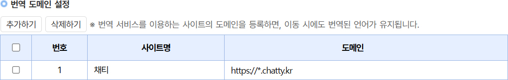 서울시립대의 번역 도메인을 ‘https://*.uos.ac.kr’로 설정하면 ‘uos.ac.kr’ 앞에 하위 도메인이 붙은 페이지에서도 AI 프로 번역이 자동으로 유지됩니다.
