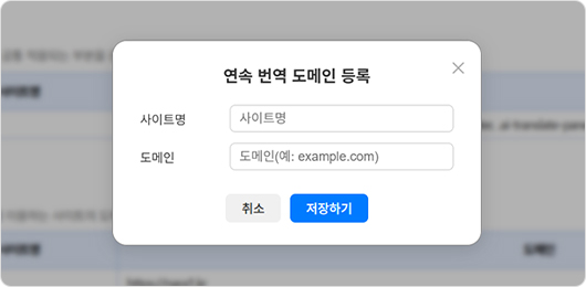 홈페이지 번역 시, 사이트의 공통 블록을 관리하고 홈페이지 이동 시에도 번역 유지할 사이트를 등록합니다.