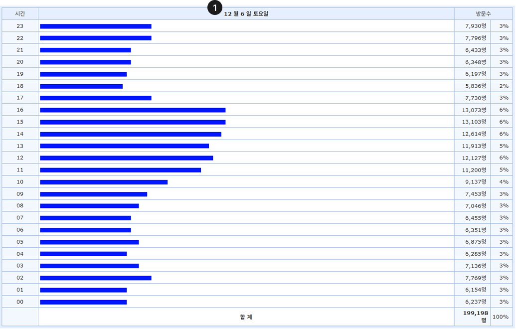 - 2월별 총방문자, 일일 평균, 시간당 평균 값을 확인할 수 있습니다.