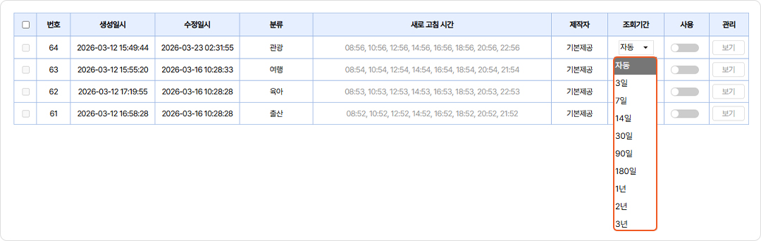 조회 기간을 7일·30일·180일·1년 등 최대 3년까지 확대 설정하세요.