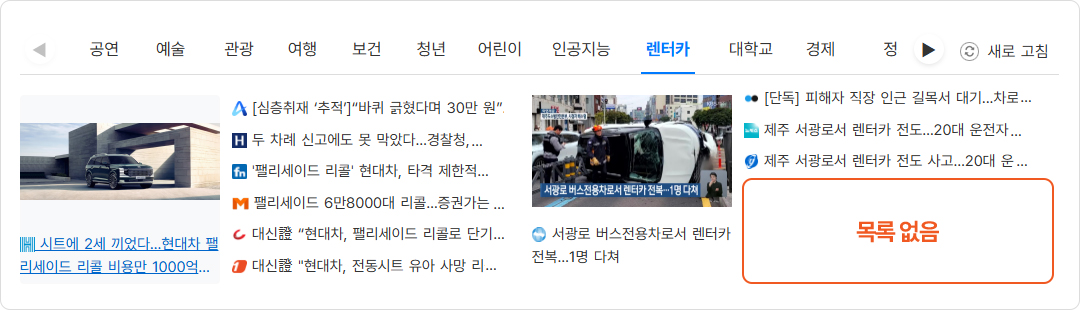 설정한 기간 내의 뉴스가 검색되며, 목록에 빈 항목이 있는 경우 기간을 늘리면 이전 뉴스까지 포함되어 자동으로 채워집니다.
