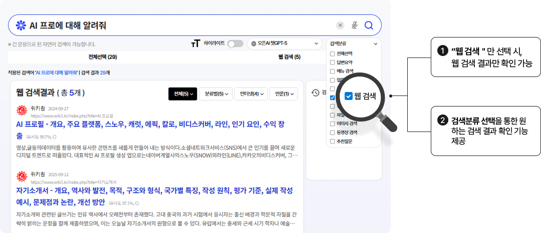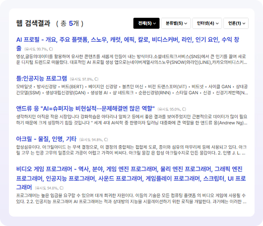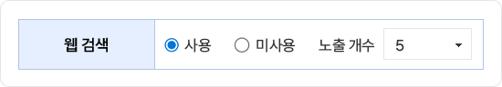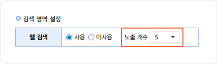 웹검색 노출 개수 선택을 통해 원하는 개수만큼 검색 결과를 확인할 수 있습니다.