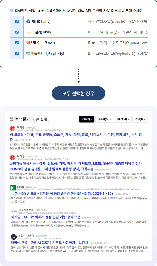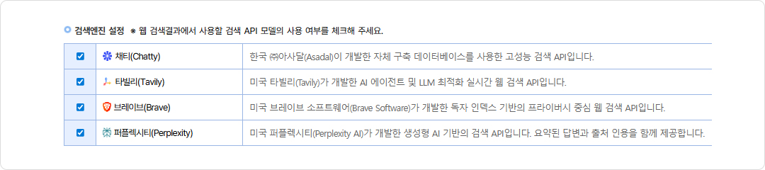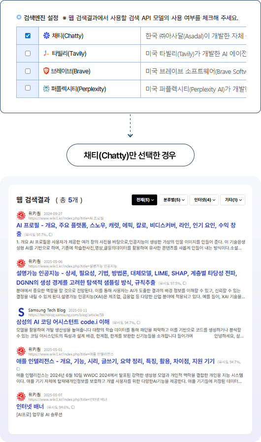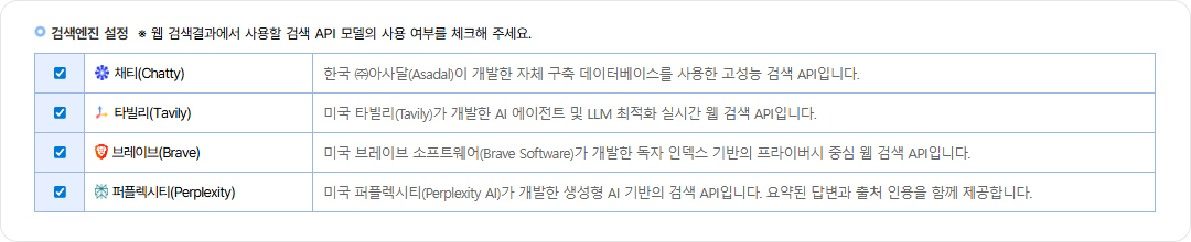 다만, 채티(Chatty) 외의 다른 검색엔진은 추후 변경될 수 있습니다.