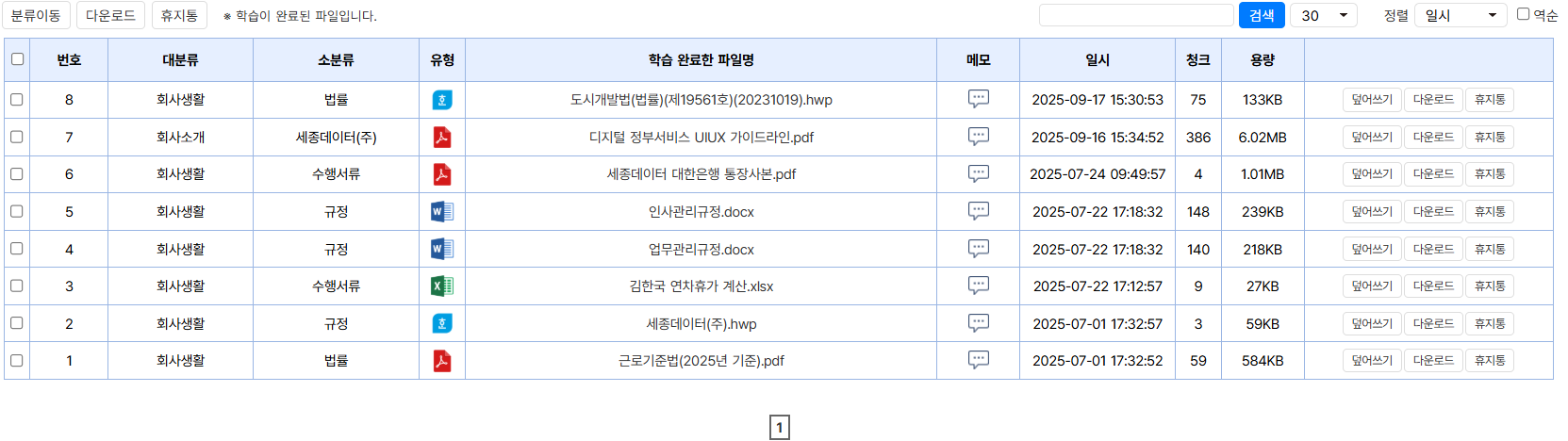 ※ 학습 대기 목록에 있는 데이터는 자동으로 저장되어, 홈페이지를 벗어나거나 새로고침을 해도 데이터가 그대로 유지됩니다.
