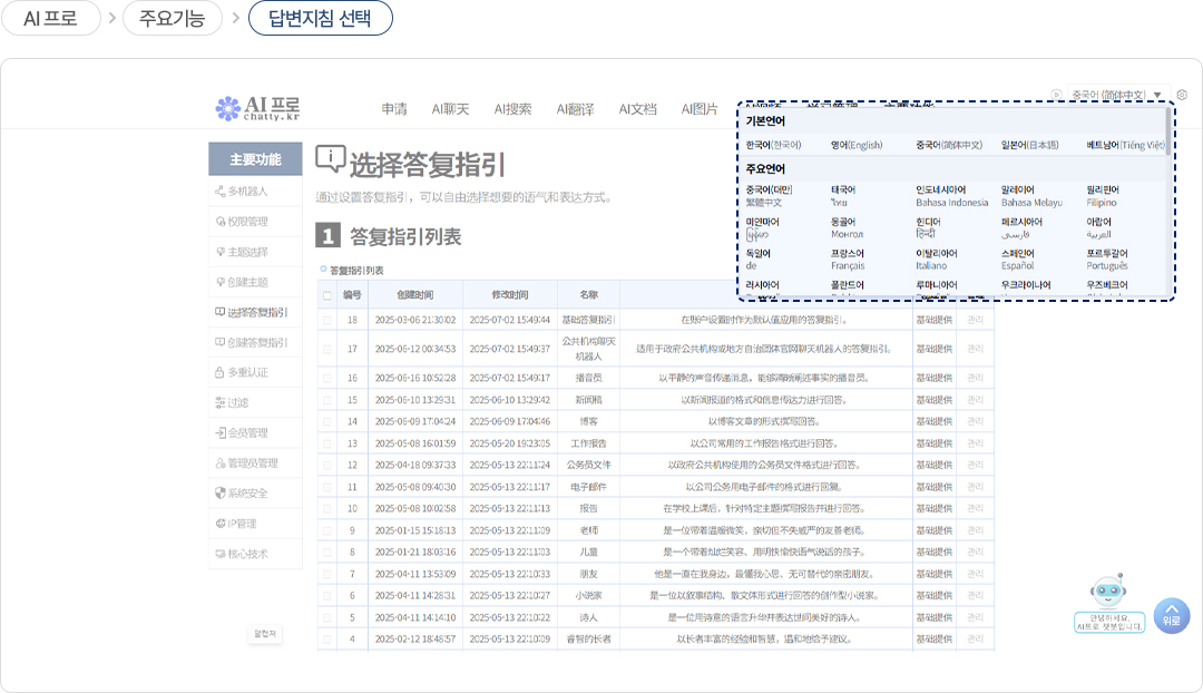 홈페이지 안에서 AI 프로의 번역 기능을 이용할 수 있습니다.