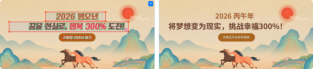)하거나 삭제할 수 있으며, 언어별 문자 길이 차이까지 고려해 텍스트 영역을 유연하게 조정하여 원본 디자인을 해치지 않는 자연스러운 이미지 번역을 제공합니다.