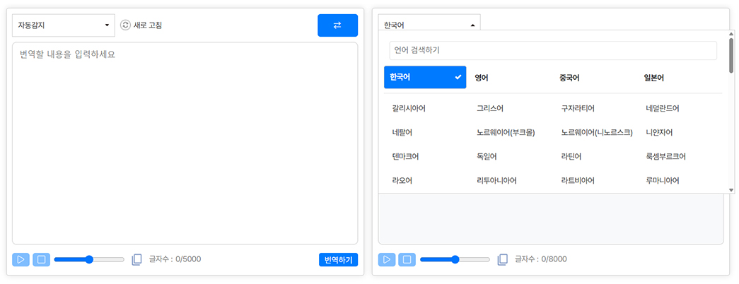 입력된 내용이 한국어일 경우 영어로, 그 외 언어일 경우 한국어로 자동 번역됩니다.