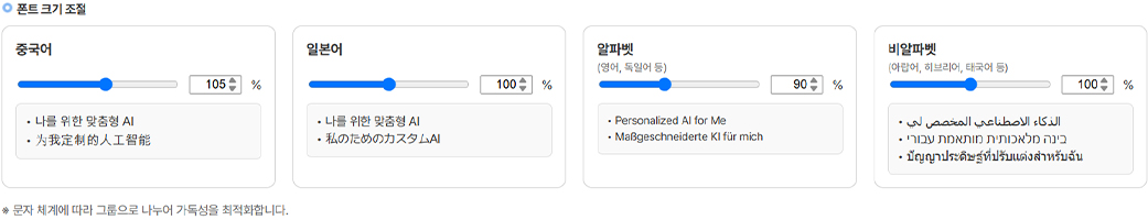 홈페이지 번역 시, 문자 체계에 따른 폰트 크기를 설정합니다.