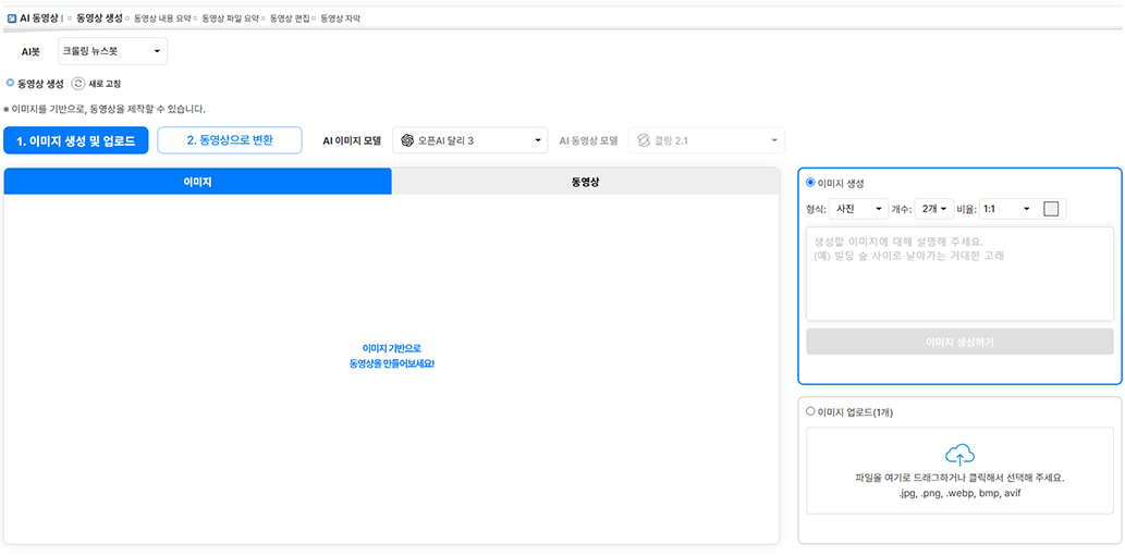 이미지를 새로 생성하거나 기존 이미지를 업로드하여 5초짜리 생생한 영상으로 변환할 수 있습니다.간단한 조작만으로 원하는 이미지를 움직이는 영상으로 만들고, 완성된 영상을 바로 다운로드하여 활용할 수 있습니다.